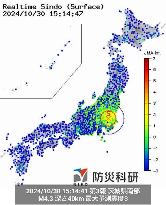 地震2024年10月30日につくば市で観測された有感地震の情報です。