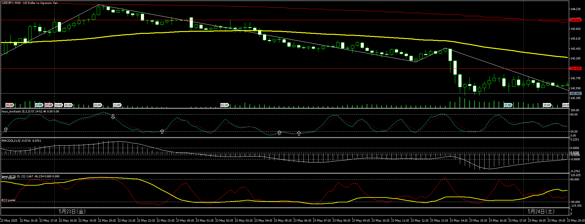 (2025年5月23日 15分足のチャートです)